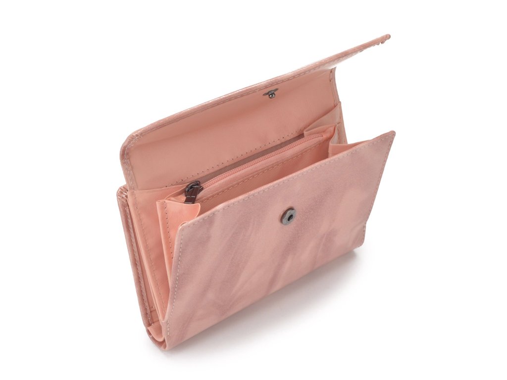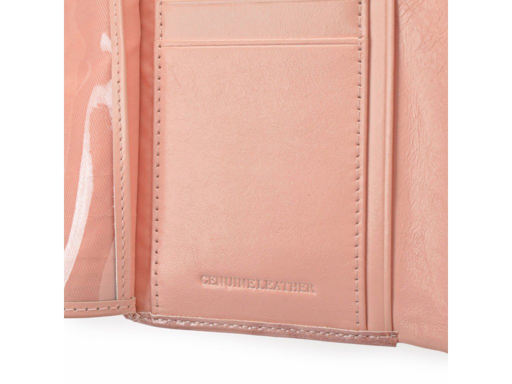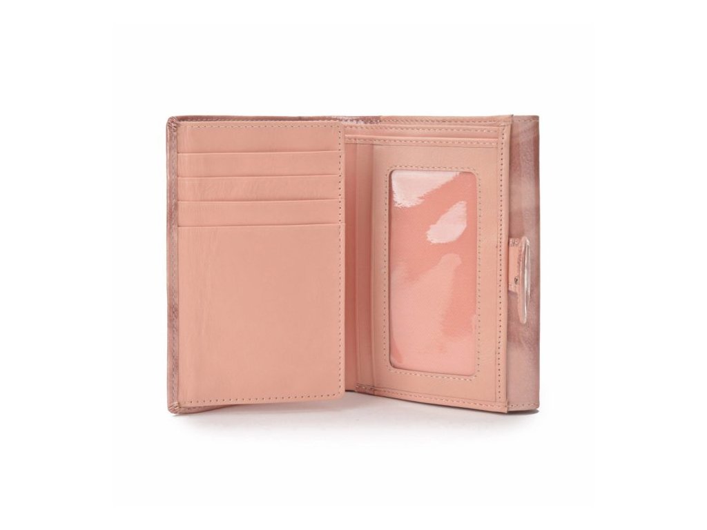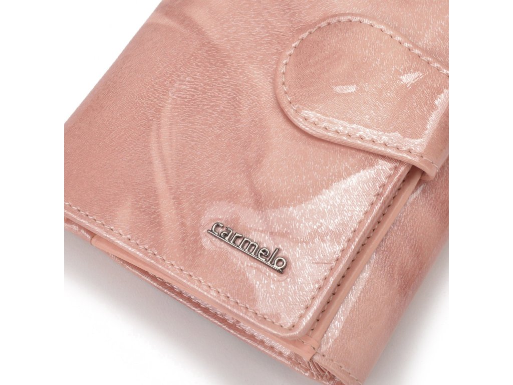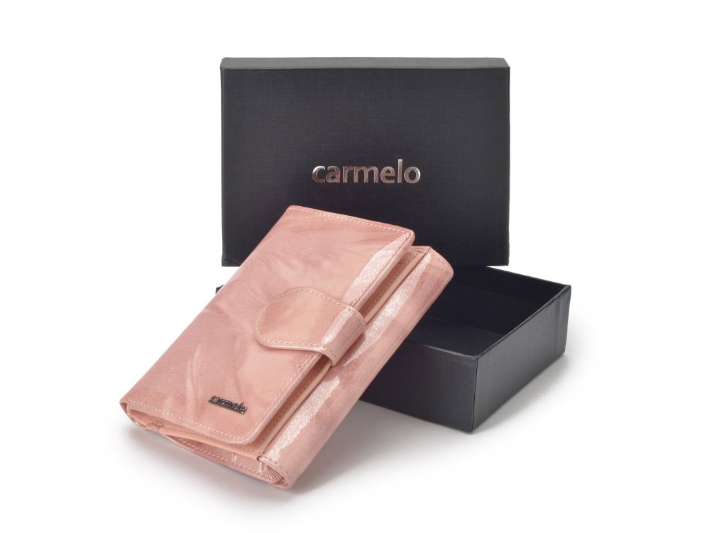 Dámská peněženka Carmelo z lakované kůže s motivem peříček. Peněženka disponuje mnoho přihrádkami jako je např. osmi přihrádkami na karty a kapsou na mince.