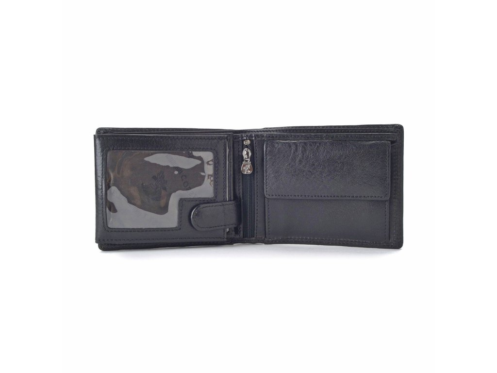 Pánská kožená peněženka na šířku, uvnitř se nachází: