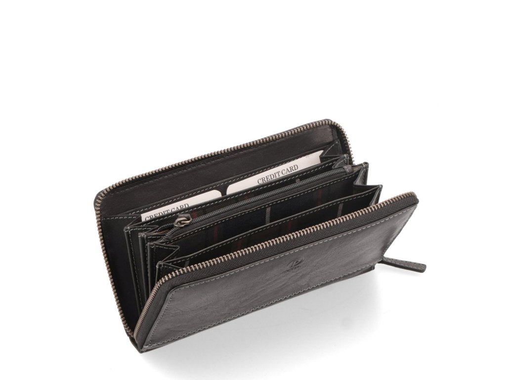 Dámská kožená peněženka značky Poyem ve stylu penálu je vyrobena z velmi kvalitní kůže a disponuje praktickým oddělení pro bankovky a karty.