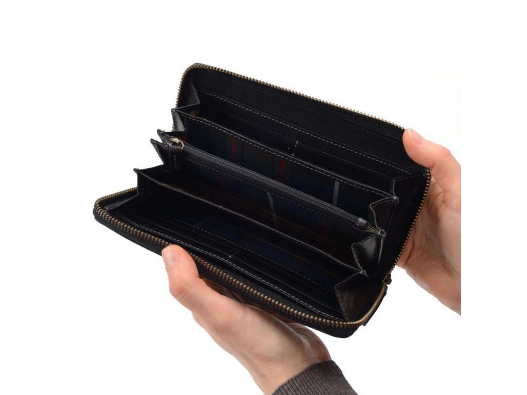 Dámská kožená peněženka typu penál, uvnitř najdete: