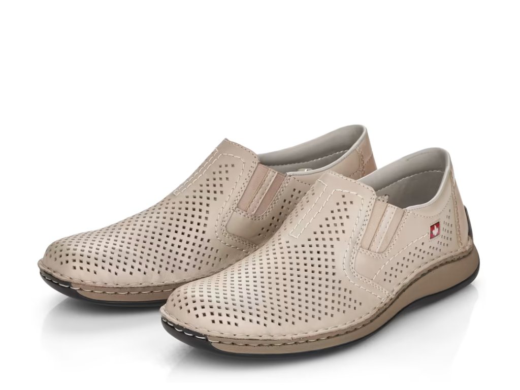 Pánské kožené polobotky značky RIEKER Vás upoutají na první pohled. Mají hladký perforovaný povrch, kulatou špičku a po stranách vsazené gumičky pro snadné obutí. Měkkou koženou stélku oceníte při celodenním nošení a podešev je se svrškem spojena šitím, které je pro tuto značku typické. Tento model určený pro široké chodidlo je vhodný jak do práce, tak na procházku.