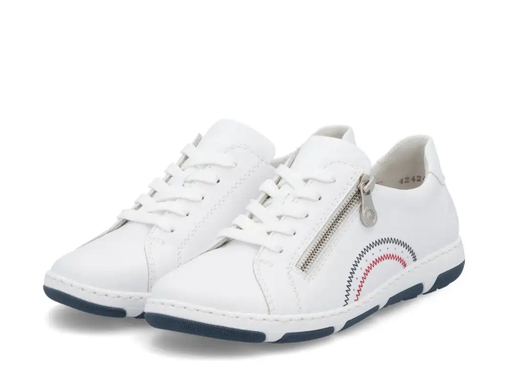 Tenisky RIEKER jsou dokonalým spojením originality, moderního designu a výjimečného pohodlí, které oceníte při každodenním nošení. Kožený svršek je na vnější straně zdoben kontrastním prošíváním a vytištěným logem, které dodává botám charakteristický styl. Funkční zip na nártu v kombinaci se šněrováním umožňuje snadné a pohodlné obouvání, přičemž zároveň zajišťuje optimální přizpůsobení bot tvaru chodidla. Pohodlí je u tohoto modelu na prvním místě. Měkká vyjímatelná stélka je navržena se širším střihem, který poskytuje prstům dostatečný prostor a přispívá k pocitu volnosti při každém kroku. Společně s flexibilní podešví, která tlumí nárazy a zajišťuje přirozený došlap, si můžete být jisti, že vaše chodidla zůstanou v pohodlí i při celodenním nošení. S tímto modelem získáváte boty, které jsou nejen módním doplňkem, ale také spolehlivým partnerem během celého dne.