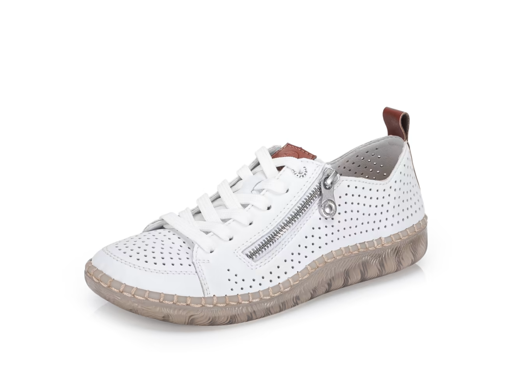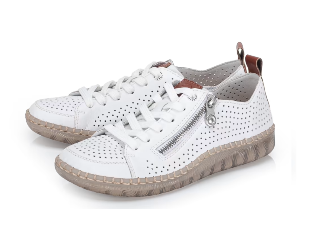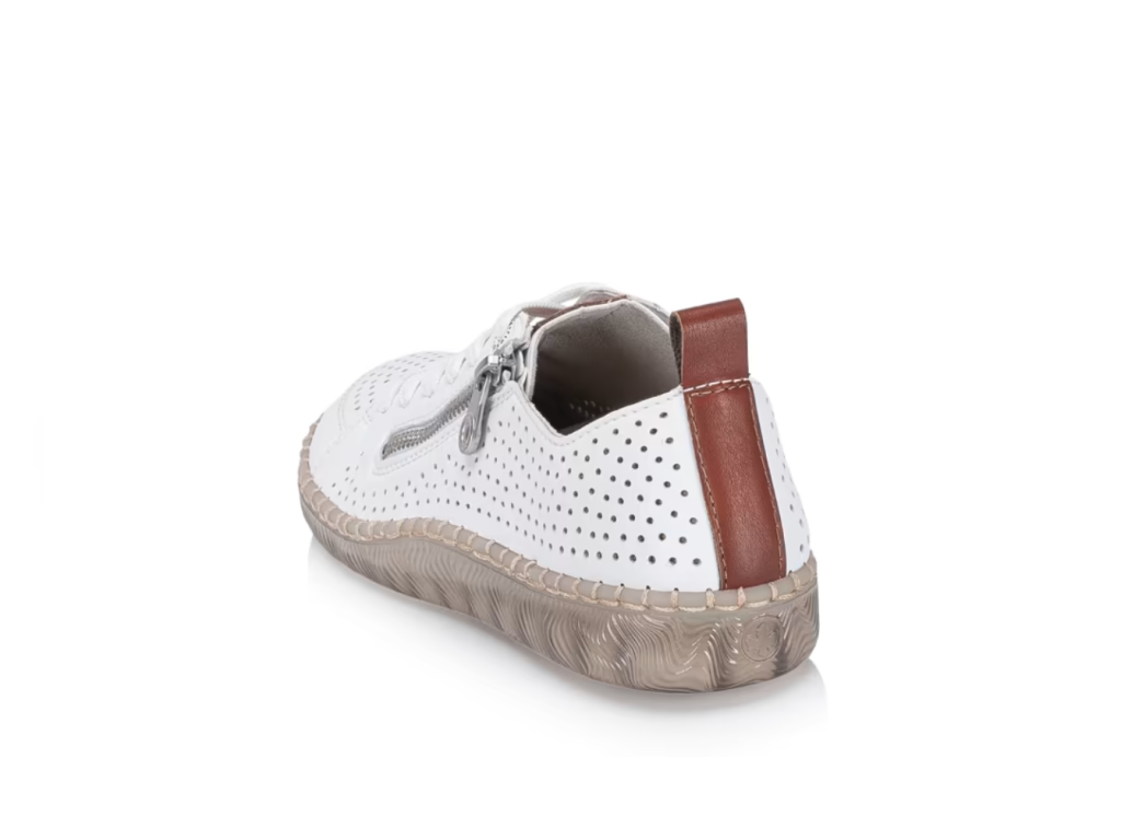 Maximální pohodlí a moderní vzhled – to vše nabízí tyto nadčasové tenisky RIEKER. Univerzální design je obohacen o praktické detaily, které zvyšují komfort při nošení. Svršek obuvi je perforován a doplněn o hnědé části, funkční zip a šněrování. Měkká vyjímatelná stélka poskytuje pohodlí po celý den a díky širšímu střihu se budete cítit pohodlně na každém kroku. Lehká podešev s technologií tlumení nárazů šetří klouby a zpříjemňuje každý krok. Tyto boty jsou ideální volbou pro ženy, které nechtějí dělat kompromisy mezi stylem a pohodlím.
