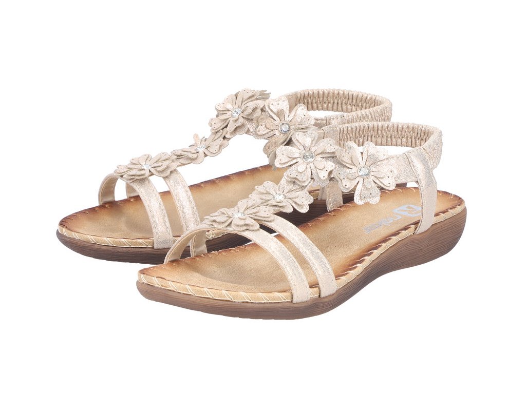 Dámské sandály jsou jemnou a elegantní volbou pro ženy, které chtějí spojit letní lehkost, pohodlí a ženský styl. Zlatavé provedení s decentními květinovými detaily dodává obuvi romantický nádech a krásně doplní letní šaty, sukně i lehké kalhoty. Díky pohodlnému zpracování jsou sandály ideální na každodenní nošení během teplých dnů.